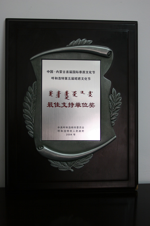 中國·內蒙古首屆國際草原文化節(jié) 呼和浩特第六屆昭君文化節(jié)最佳支持單位獎