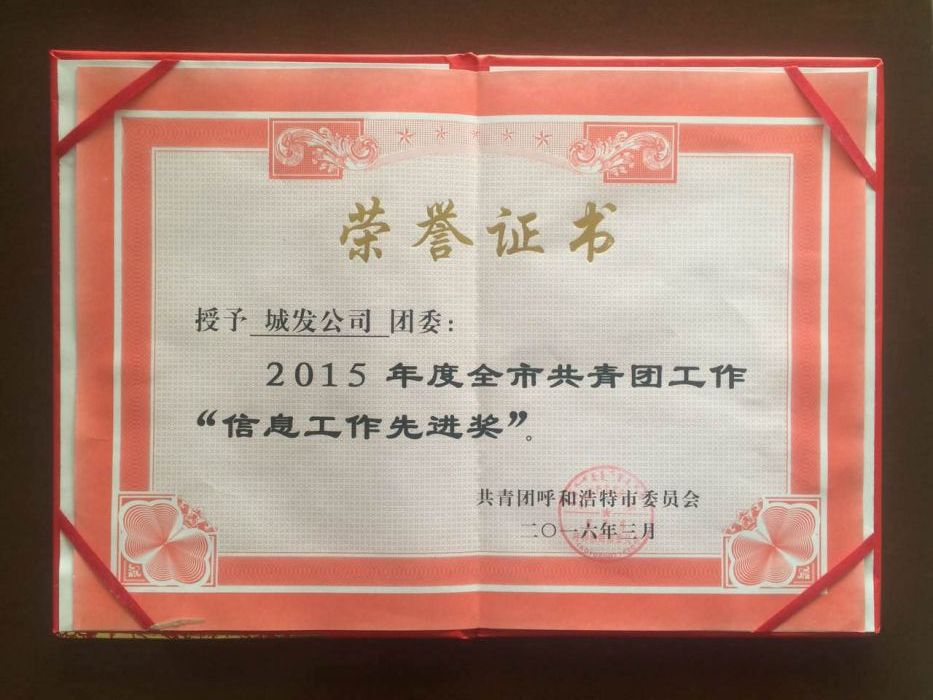 城發公司團委榮獲“2015年度全市共青團工作信息工作先進獎”