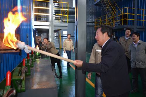 (副市長孫建華在城發公司辛家營熱源廠為2號爐點火 李波攝)