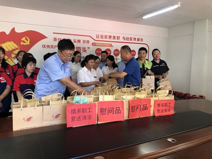 8月4日上午,公司工會(huì)在城發(fā)物業(yè)公司所服務(wù)的惠新苑、祥和苑、金城小區(qū)和橋靠分公司開(kāi)展了送清涼慰問(wèn)活動(dòng)。慰問(wèn)組一行給堅(jiān)守工作崗位的物業(yè)職工送去茶葉、冰糖和綠豆,帶上了公司的關(guān)懷和慰問(wèn)。