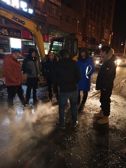 19日晚上10時,歷經15個小時搶修完畢。搶修結束后,搶修師傅們從挖開的坑里出來后,身穿的工作服上沾滿了泥漿,衣服也被熱氣蒸濕了,時值寒冬,室外溫度零下16℃,衣服很快被凍硬。一位剛從坑里出來打著哆嗦的搶修師傅告訴筆者,管道里水的溫度近90°,溝里熱氣騰騰,身上都冒汗呢,但一出地面,100多度的溫差,感覺直接就凍到骨頭里了,腿都凍直了,邁不了步。