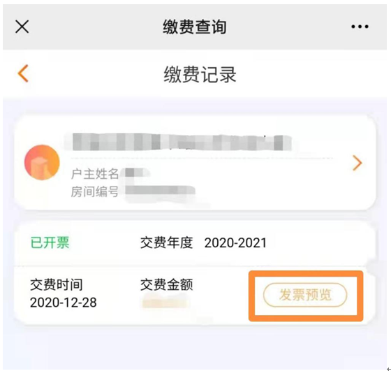 ⑦驗(yàn)證之后即可查詢房屋繳費(fèi)記錄,在該頁面點(diǎn)擊發(fā)票預(yù)覽