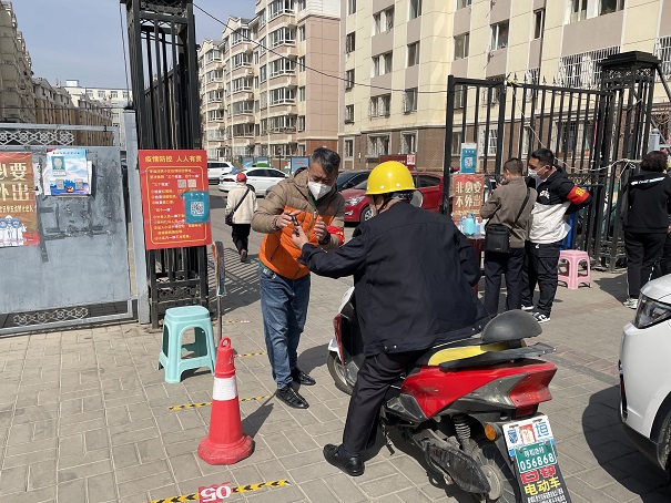 "師傅,請掃一下青城碼。""大娘,您打開手機,用微信掃一下這個碼。"4月11日,筆者在新城家園澤園值守點看到設備公司員工胡志鵬正在對進入小區的車輛和行人逐一查驗青城碼。談起這兩天的工作時胡志鵬說:"這個點由我公司的3名員工輪流值守,每天從早晨七點值守到晚上十點半,雖然時間很長,但是小區居民很配合,覺得工作起來很順暢,我們會竭盡全力完成好公司交給的任務。"