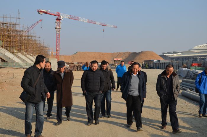 在長途汽車站工地聽負責(zé)人介紹情況。