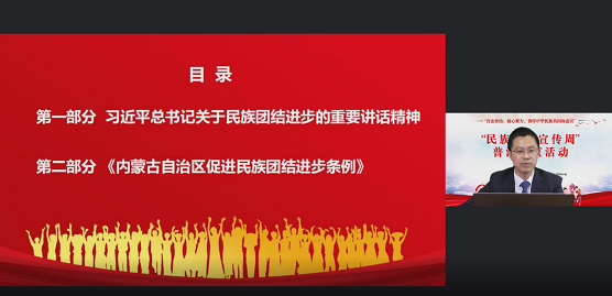 本次培訓以良法善治,凝心聚力,鑄牢中華民族共同體意識為主題,中國政法大學劉東剛博士圍繞習近平總書記關于民族團結進步的重要講話指示精神、《中國共產黨統(tǒng)一戰(zhàn)線工作條例》《內蒙古自治區(qū)促進民族團結進步條例》《中華人民共和國國家通用語言文字法》《內蒙古自治區(qū)實施〈中華人民共和國國家通用語言文字法〉辦法》《民族區(qū)域自治法》《城市民族工作條例》的重點亮點內容進行了解讀。