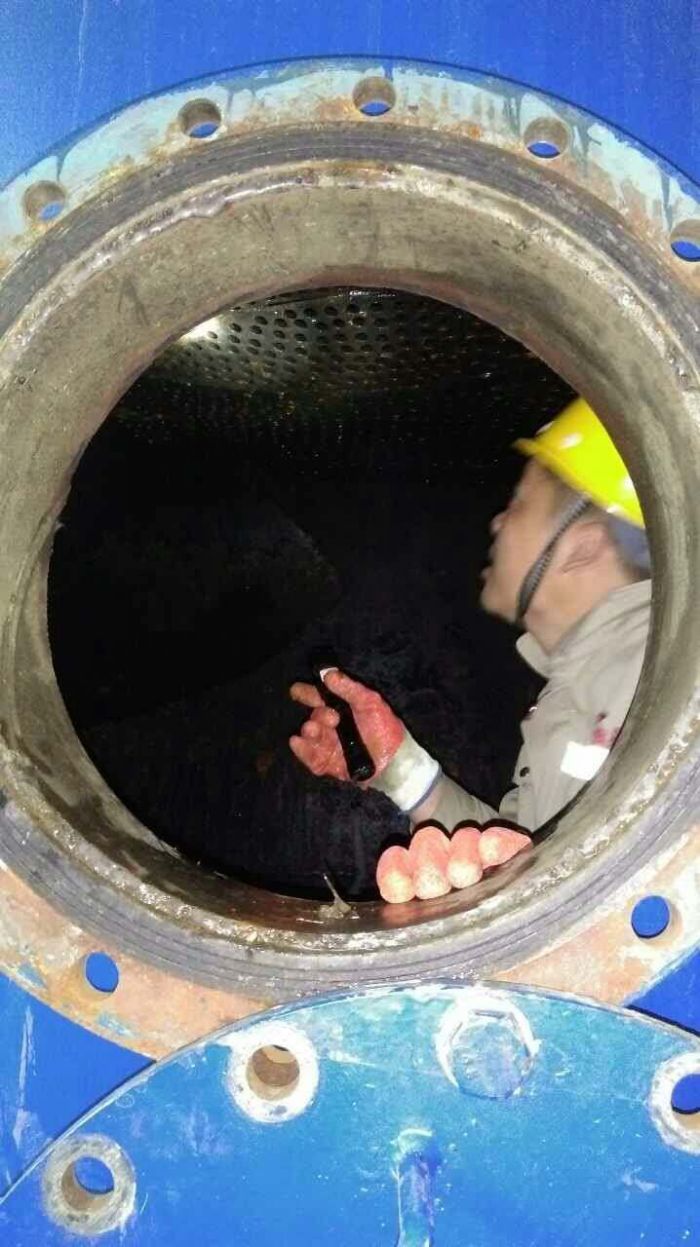 除污器在水系統中有著重要的作用。為了保證水處理系統內水質的達標,減少因雜物造成的阻力以及水質不達標帶來的危害,水化車間的職工每年會定期對除污器進行清掏和沖洗,排出管道中的雜物和污土。清淘工作需要員工鉆入除污器內部,對附著在除污器濾柱上的雜物、垃圾進行手工清除,由于除污器內操作空間有限,增加了清掏的難度,既臟又累,通過大家的努力,用了一天的時間將A車間除污器清掏完畢。此次清掏收獲頗多,例如:線纜皮、泡沫、甚至還有皮球等。近年來,在分公司領導的高度重視和相關部門的配合下,除污器排出的垃圾逐年減少,一次網水質逐年得到改善。