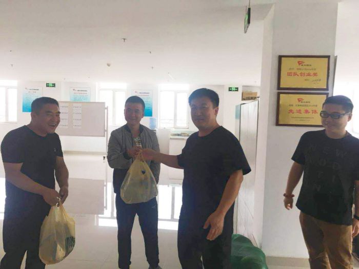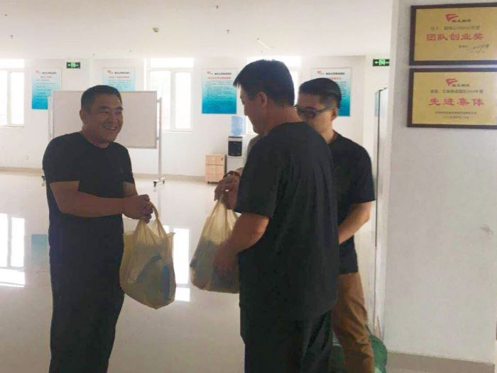 2018年8月17日,城發(fā)物流公司工會組織開展了暑期慰問、清涼一夏的送清涼慰問園區(qū)一線員工的活動。黨支部書記楊福平、經(jīng)理丁雪峰等一行為物流公司一線員工送去了慰問品。