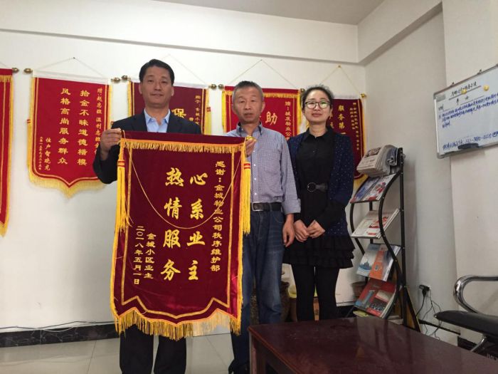 在大家的共同努力下,物業服務品質提升百日行動工作得到了業主的好評與支持,項目處先后收到業主送來的三面寫有急業主所急 幫業主所需、心系業主 熱情服務、服務第一全心為民 客戶至上暖至人心的錦旗。