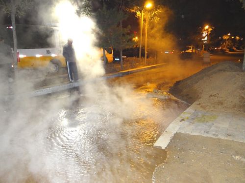十月二十六日晚19時左右,烏蘭察布東路一次管網突然發生嚴重跑水,事故原因為供電局進行橫過路頂管作業,造成一次管網破裂,致使橋靠分公司第五運營所所轄萬達站等13個熱力站停運,約150萬平米熱用戶供暖受到嚴重影響。