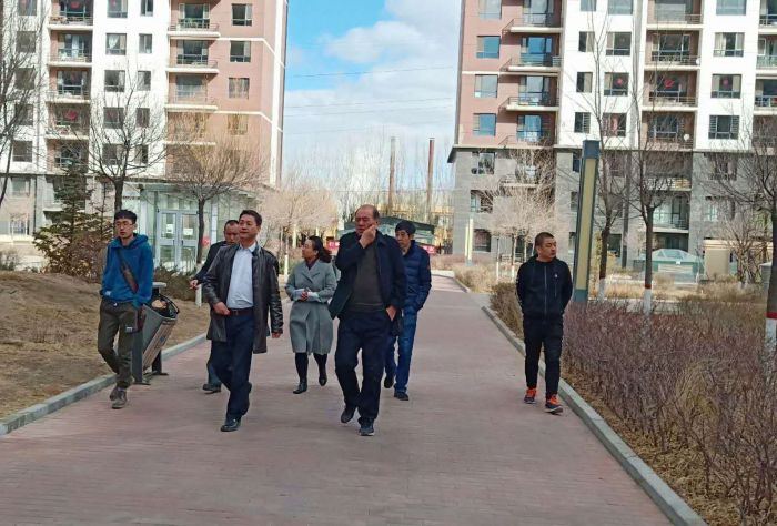 3月20日,呼和浩特市賽罕區物業辦工作人員到金城小區檢查指導物業服務工作。