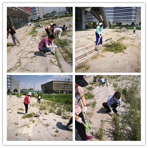 經(jīng)過一上午的作業(yè),廣場(chǎng)上的蒿草基本清理完畢。大家