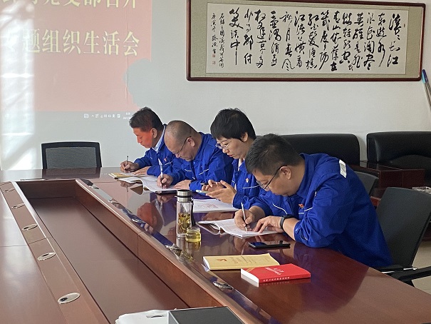 會上,娜仁同志代表黨支部委員會通報了組織生活會準備工作情況、征求意見和黨支部委員會檢視問題情況,并對存在的突出問題制定出了初步整改措施。隨后班子成員、班子成員與黨員、黨員與黨員之間圍繞“以案促改”這一主題,逐一對照檢查開展批評與自我批評,交流體會、檢視問題、查找不足、盤點收獲。